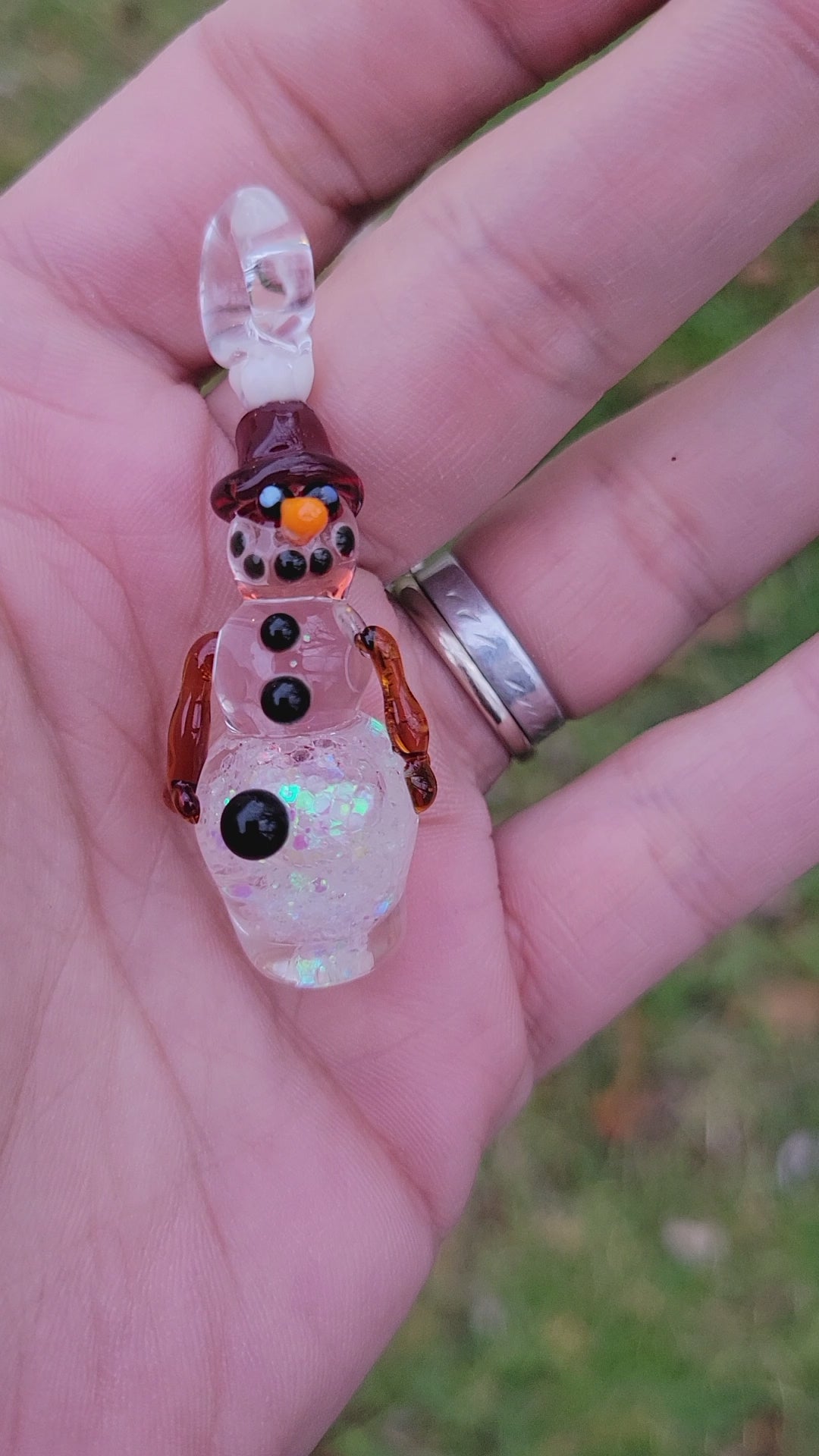 Experience the calming and mesmerizing effects of our handblown Glass Snowman Fidget! Perfect for the holiday season, this intricately crafted mini Christmas ornament is not only a beautiful decoration, but also a tactile tool for reducing stress and anxiety. Embrace the magic of the season with our Glass Snowman Fidget!