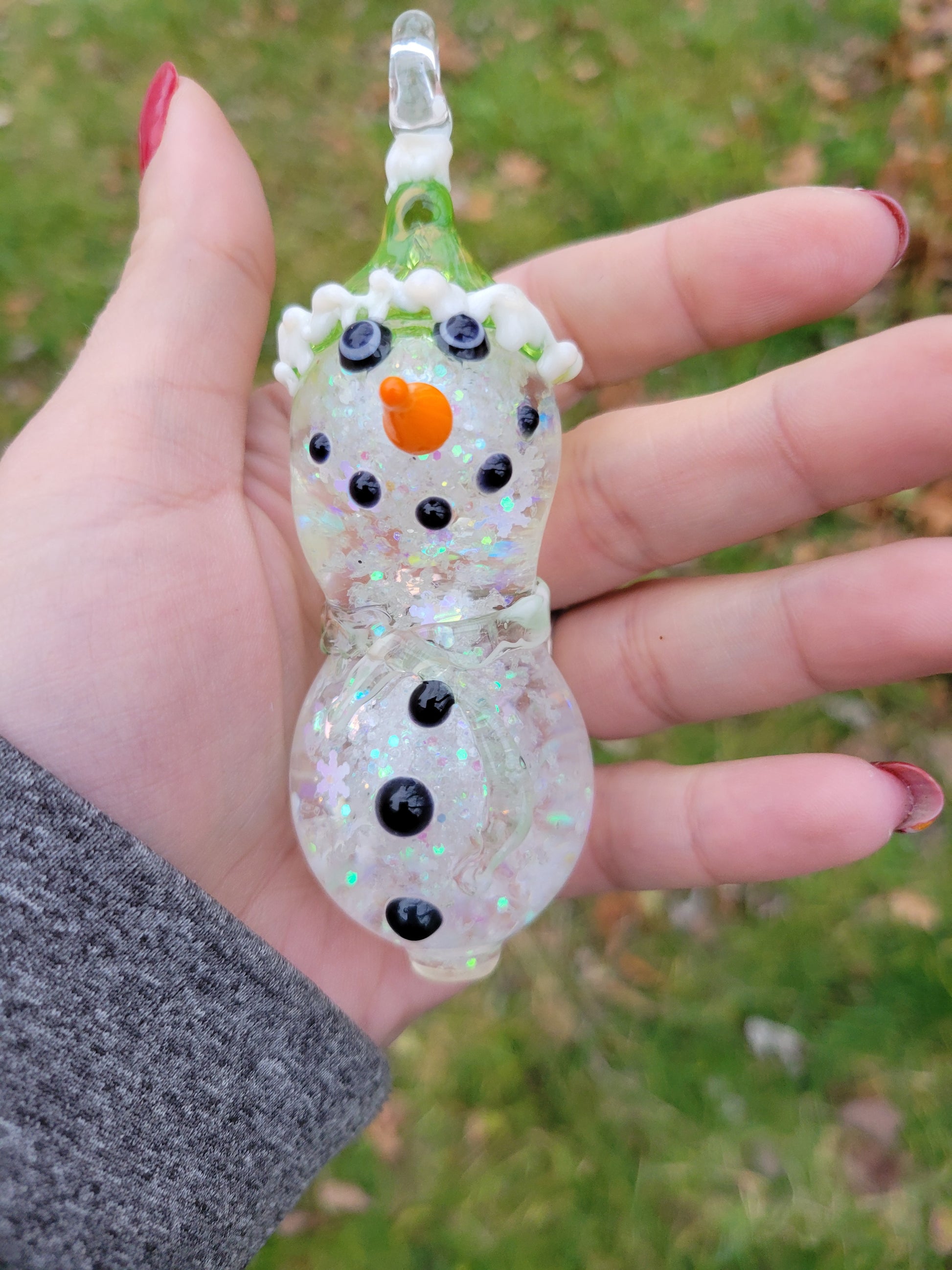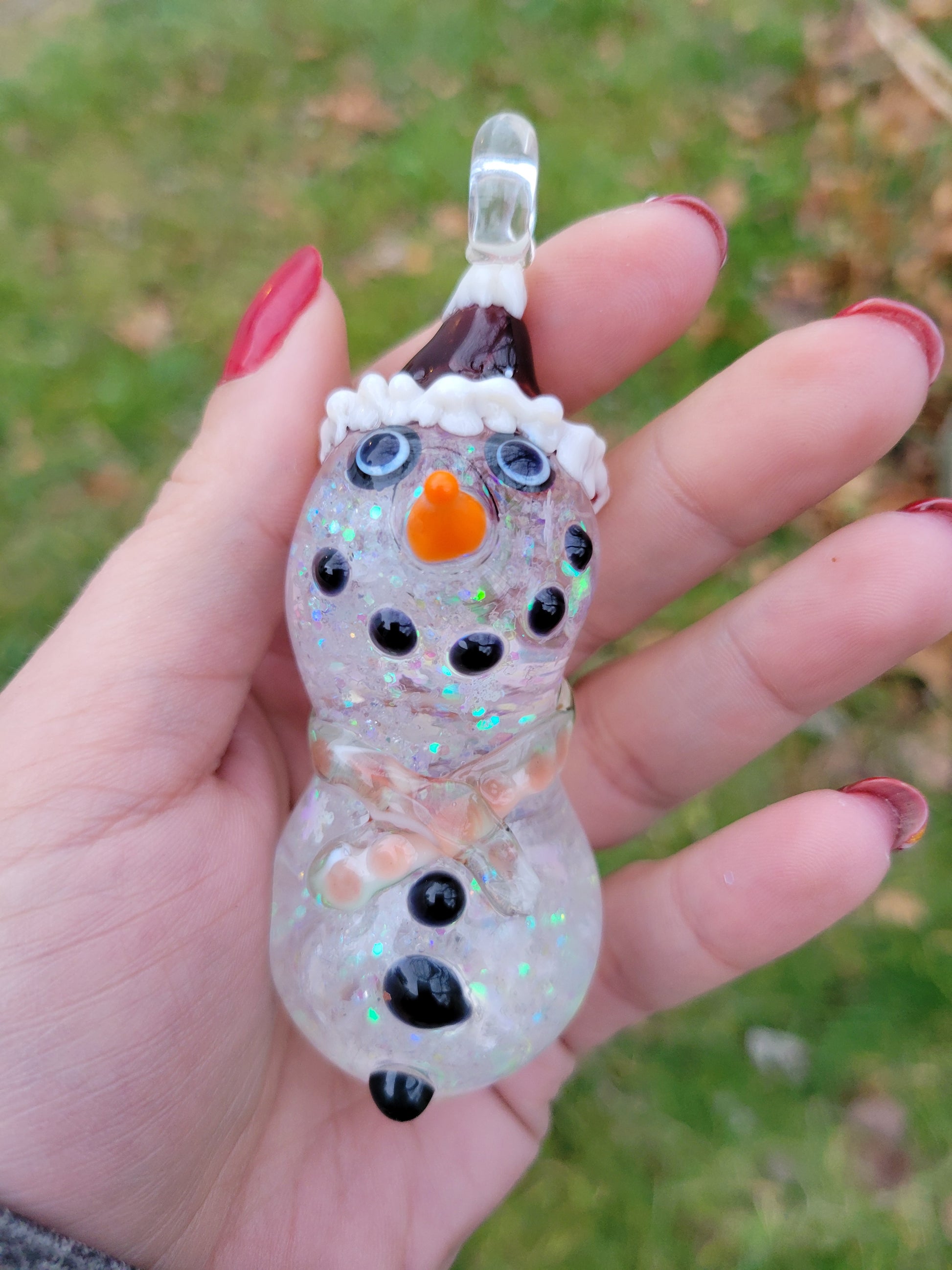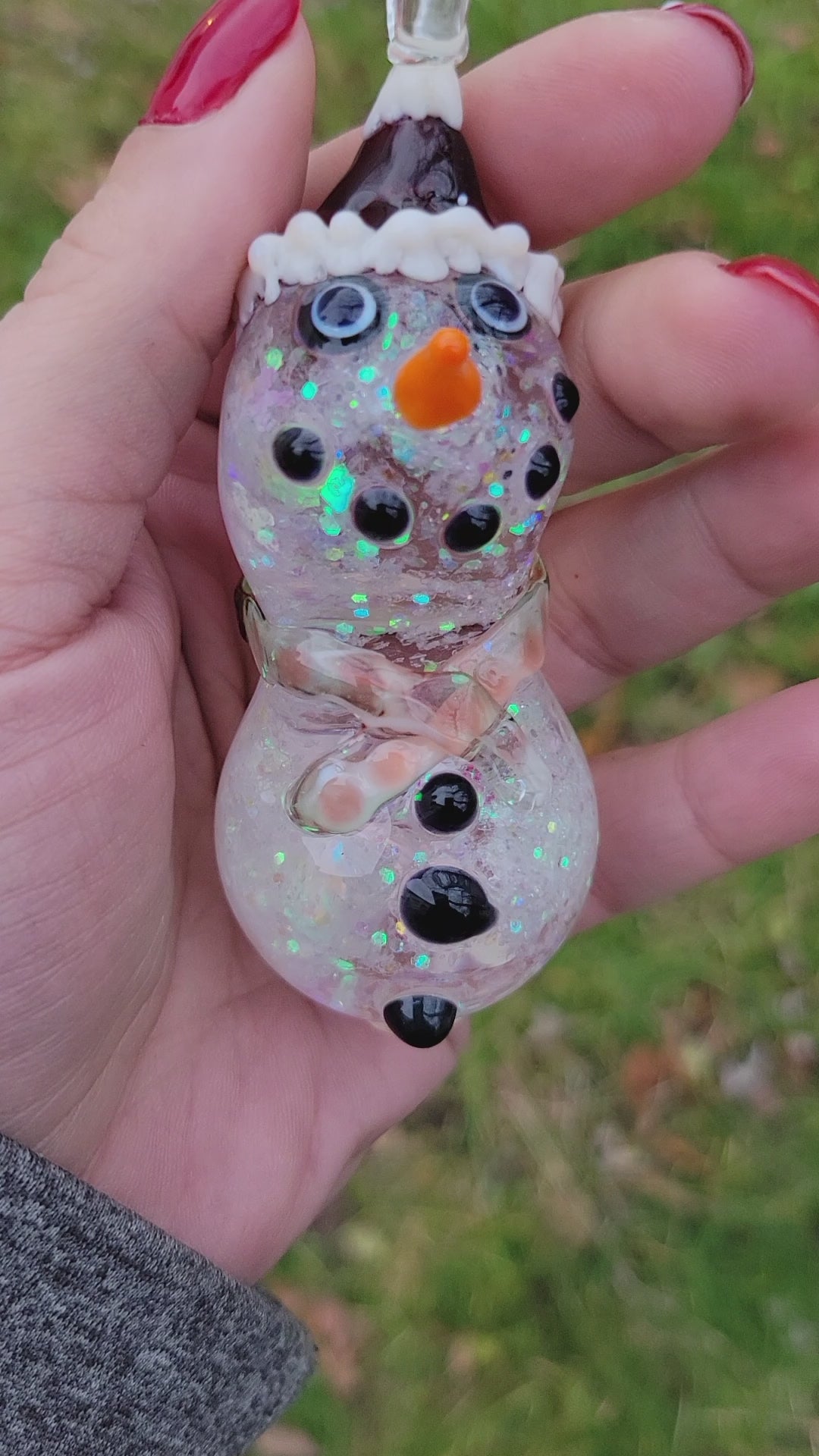 Liquid Filled Glass Snowman Ornament - Handblown Glass